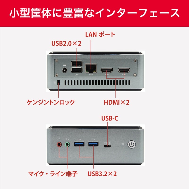 | インターフェース (前面ポート) | 1×USB-C 2×USB 3.2 1×ライン端子 1×マイク端子 |